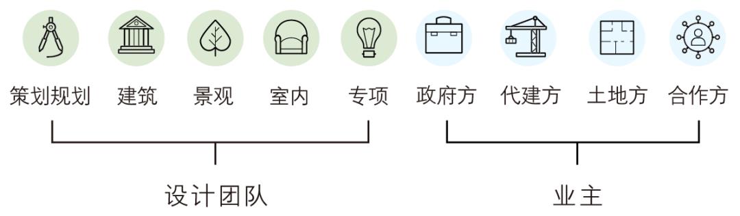 小镇类项目的规模较大,涉及到的各项要素也十分复杂,由合作模式带来的“甲方”的构成也较为多元。复合式的项目内容带来复合型团队合作要求。